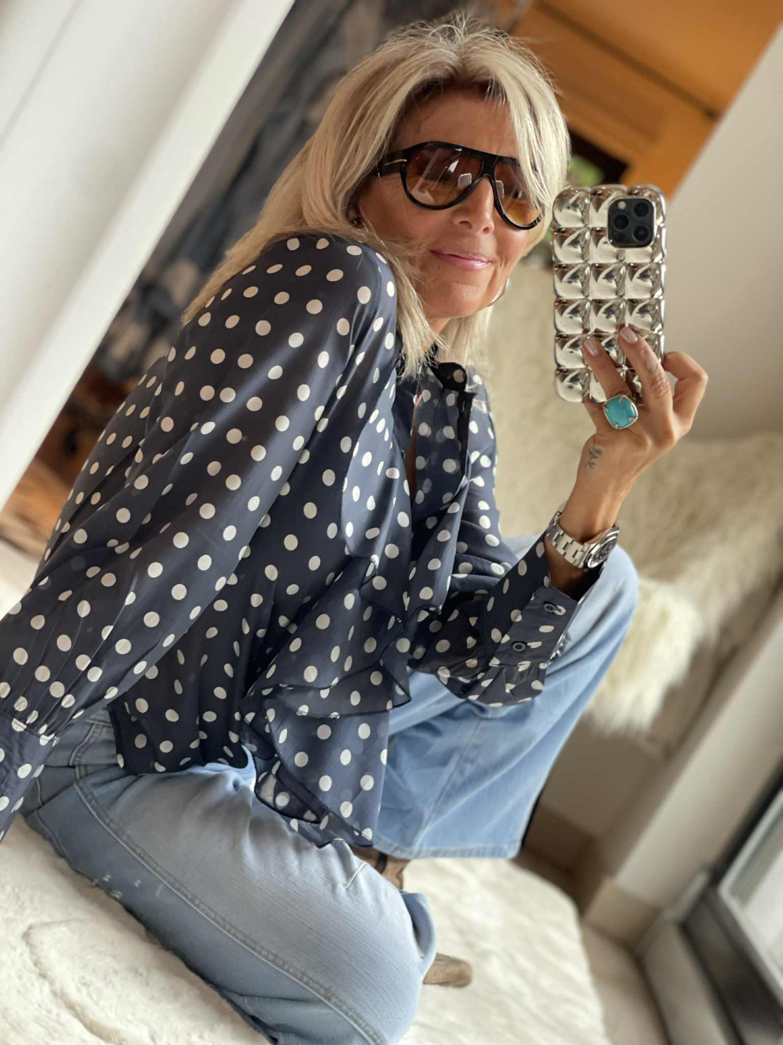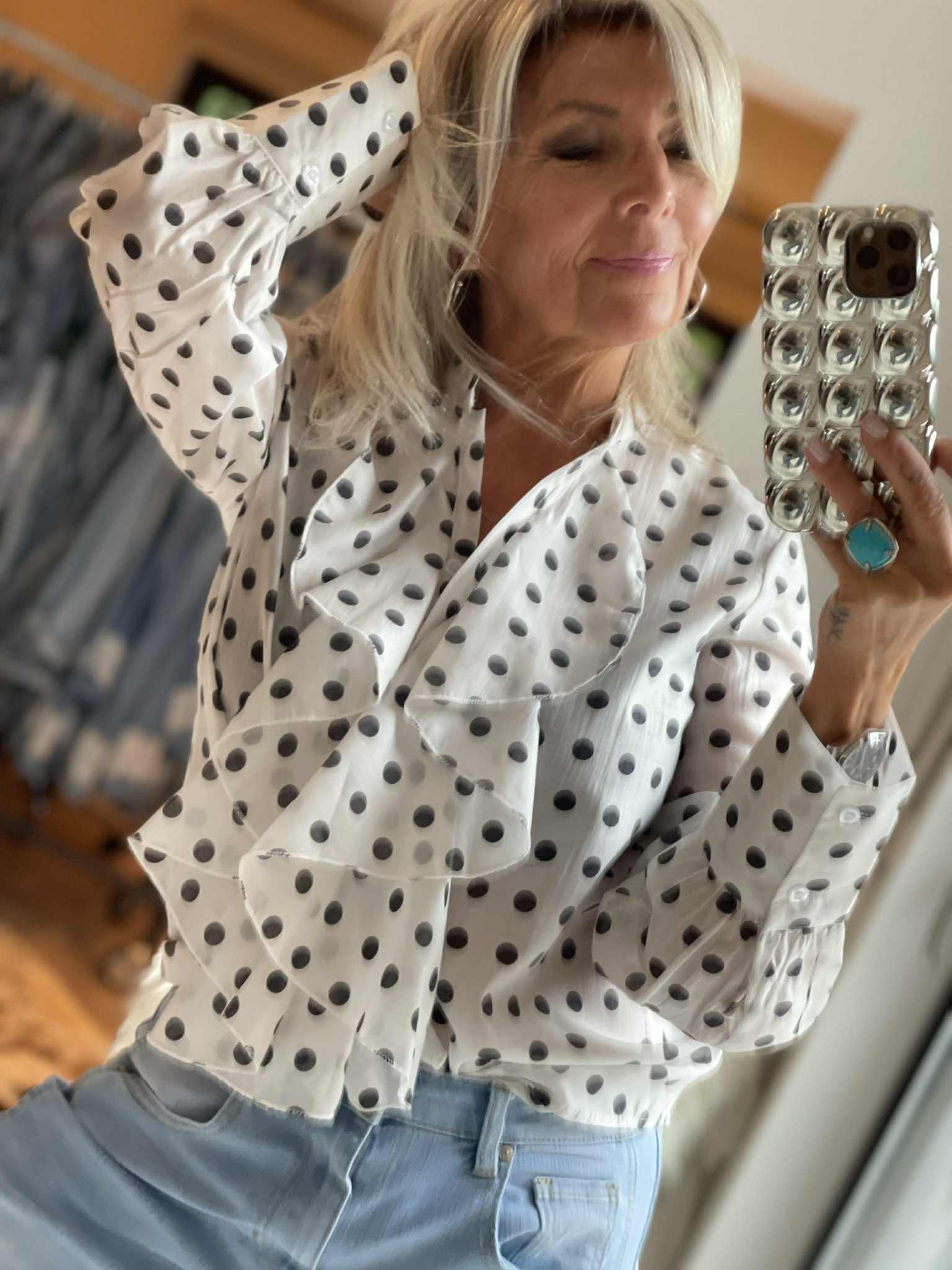 Chemise à pois col jabot