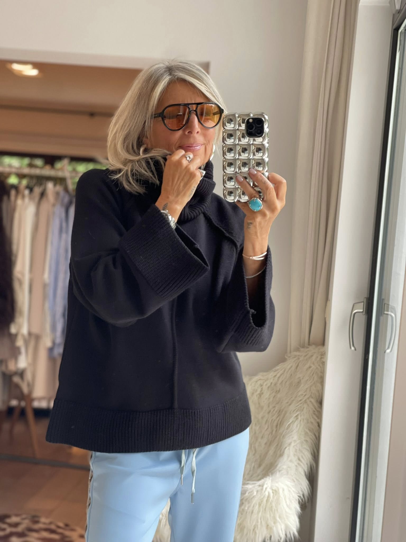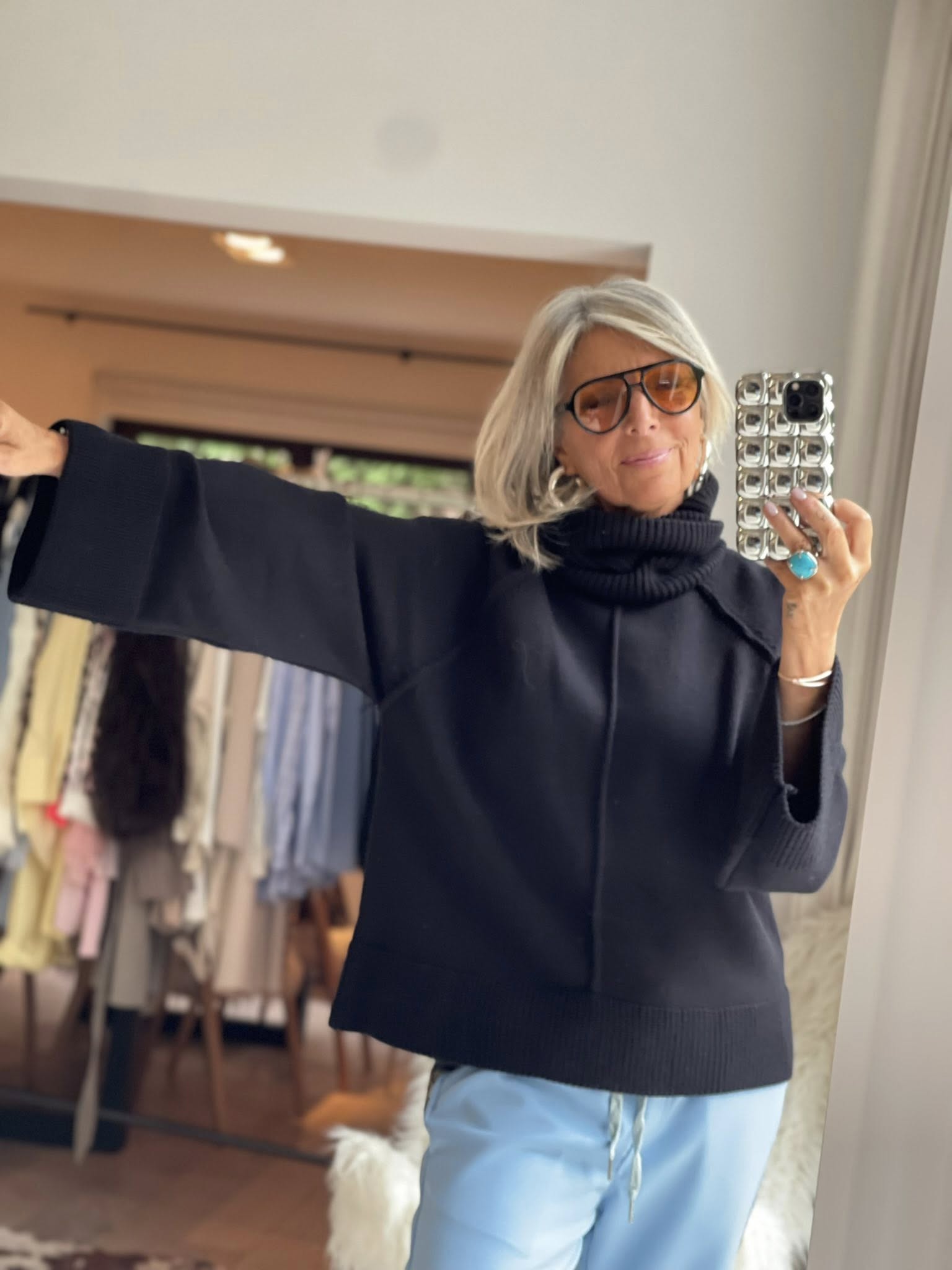 Pull col roulé manches évasées
